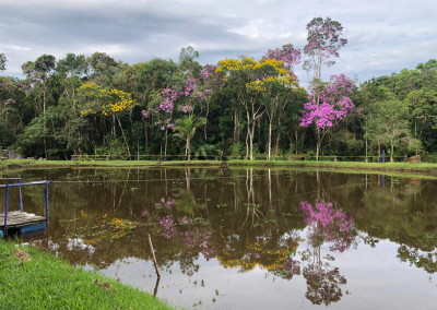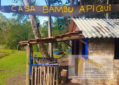 Casa Sede, logo na entrada, com varanda, 3 quartos, sala com lareira, hall, banheiro, ampla cozinha com fogão de lenha, salão para palestras para 30 pessoas e um salão superior para leitura, palestras, três banheiros masculinos e dois femininos, dois alpendres com churrasqueiras, mesas, bancos para festas para cem pessoas, Casa de Caseiro com 2 quartos, copa e cozinha com fogão de lenha, lavanderia, tanque, Casa Três com quarto, sala, cozinha e banheiro, alpendre para festas, quatro canis, Casa da Onça com quarto, sala cozinha e banheiro, Casa do Lago com 2 quartos, sala cozinha e banheiro, fogão de lenha, Casa do Mato, quarto, sala cozinha, banheiro e fogão de lenha, Cozinha caipira com fogão de lenha, forno, pia, bancadas, fogão industrial, Casa da Onça 2, com quarto, sala, cozinha e banheiro, Oficina e garagem do trator, Galinheiro em frente a horta para 100 aves com água corrente, Redário com 50m², Auditório para 50 pessoas – 72m², Sala de leitura e jogos – 72m², Museu e 4 baias Espaço Livre – 92m², Quiosque com churrasqueira, pia, bancos – 15m², Quiosque de almoço – 40m², Quiosque da casa 3 – 50m². trilhas autoguiadas com sinalização que permite interação com o ambiente natural de forma segura durante todo o trajeto. São 4 percursos, que variam de 40 minutos a 2 horas. Entre os atrativos, estão a nascente de água, preservada por cerca de 40 anos, a roda dágua e vestígios de animais silvestres da Mata Atlântica.