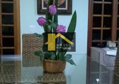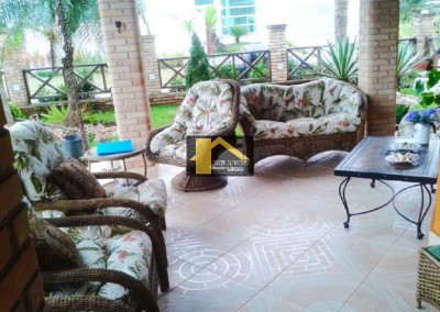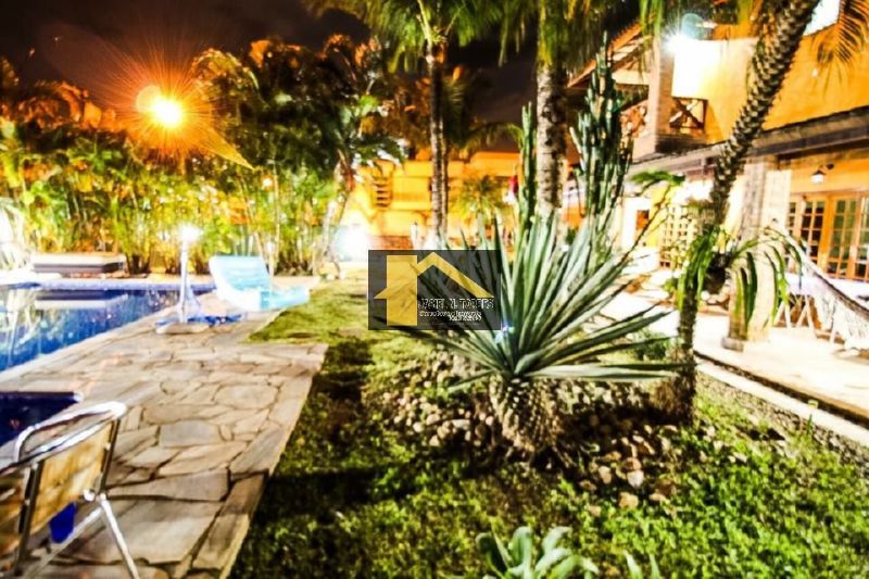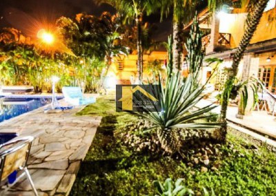 Terreno = 588 m2, Área construída = +- 400 m2, piscina = 4x9 m em vinil, jardim paisagístico com 7 coqueiros e várias árvores frutíferas, além de muitas plantas ornamentais, área gourmet com: churrasqueira, fogão à lenha, cooktop, mesa de madeira maciça com bancos para 12 lugares, pia de granito com 3 metros mais bancada para o cooktop, Sala com 3 ambientes: lareira, jantar e estar (tv), 5 dormitórios, sendo 4 suítes, com 01 suíte master com hidro, com banheira de canto dupla, 01 escritório, cômodo para caseiro com cozinha 6 banheiros no total,Varanda em 5 quartos, Varanda no térreo, o que proporciona arejamento na área interna, Entrada lateral a um ambiente independente, que pode ser adaptado como desejado, tal como: sala, dormitório, área de meditação, etc. - Lindo imóvel, em localização privilegiada, condomínio de alto padrão - OBS.: Aceita permuta por chácara de igual ou menor valor, bem como outros imóveis de menor valor.